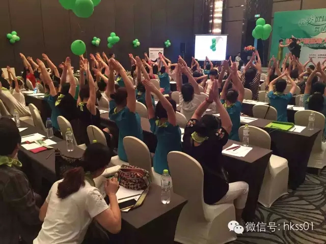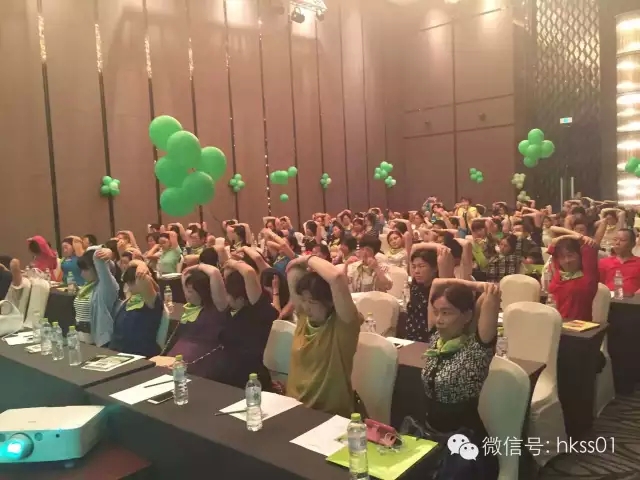 會場以代表著健康與生命力的綠色貫穿,每位家人都佩戴著綠絲巾,全場瞬間變成了綠色的歡樂海洋!會議場面十分火爆,不僅有HIGH爆全場的美頸操,更有專業的健康知識傳遞以及法姿純客戶的效果分享,多方位體現出企業與項目的優勢,并獲得一致好評!