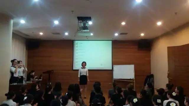 正在為寶貝們講解頸部知識的姚總,寶貝們積極互動,課堂氛圍十分融洽